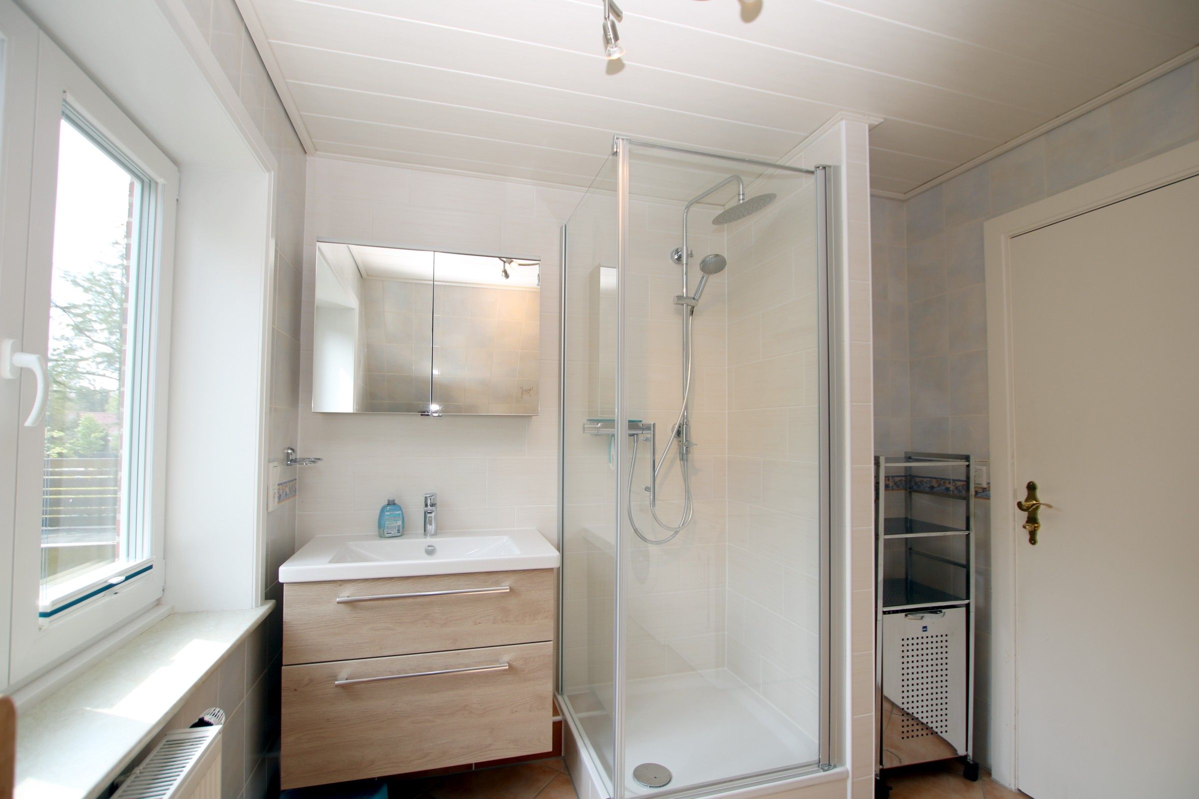 Das weitgehend schwellenfreie Erdgeschoss bietet zudem mit einem separaten Schlafraum und Dusche / WC auch gehbehinderten Personen besonderen Komfort. Den separaten