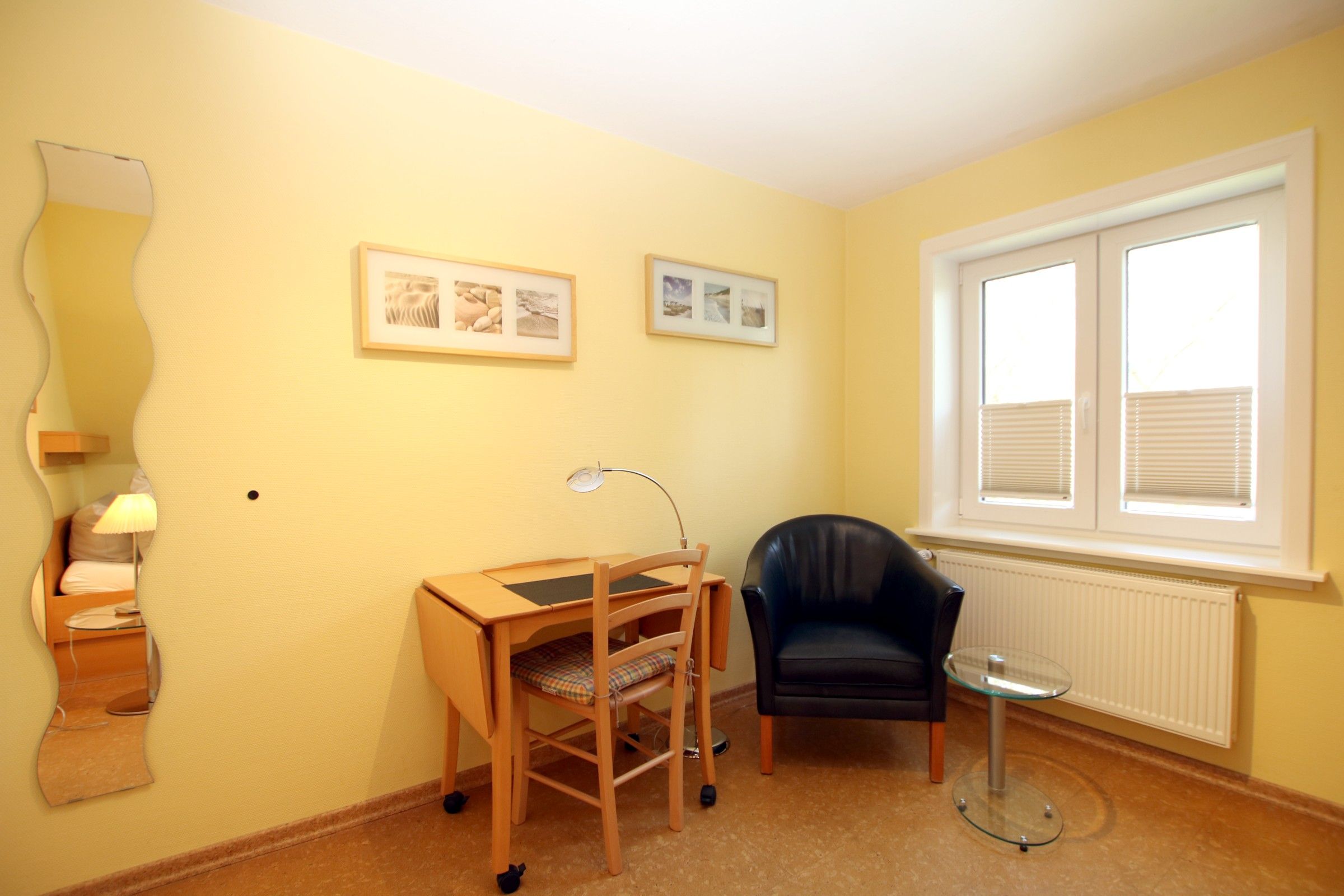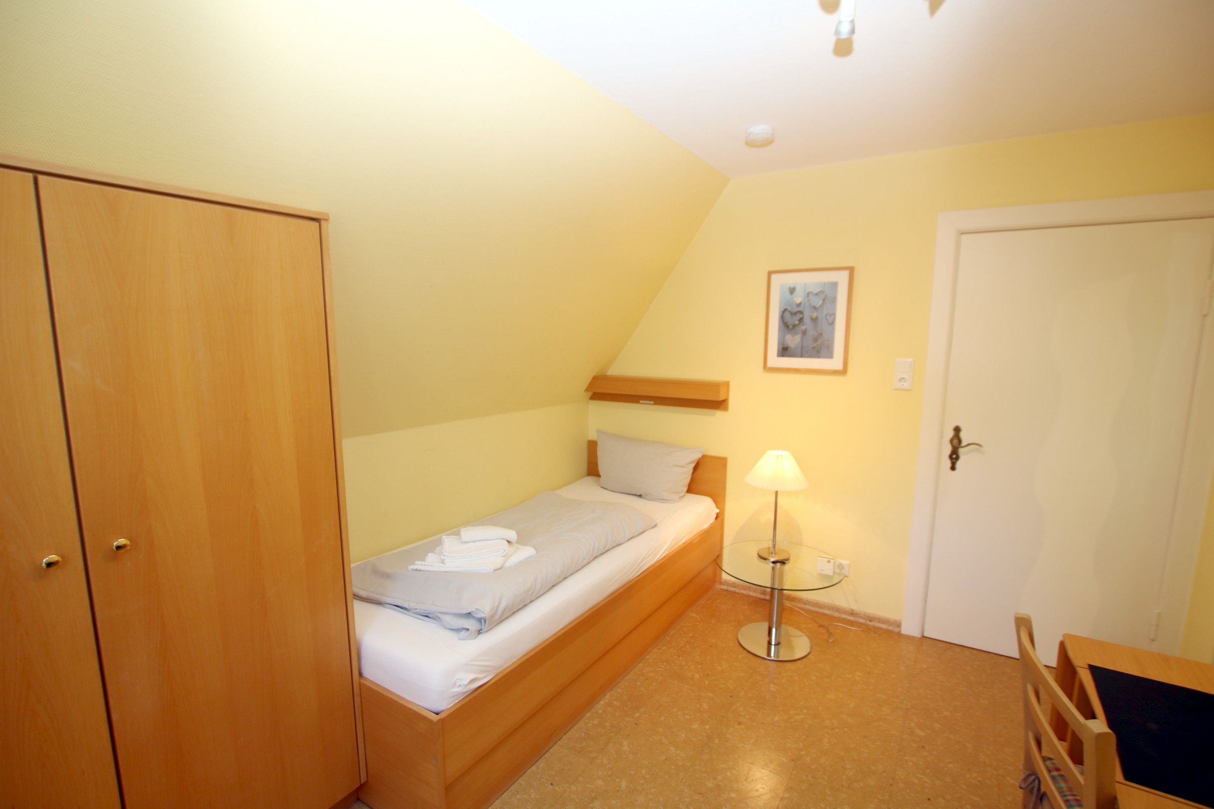Schlafraum erreicht man auch direkt vom PKW-Abstellplatz am Hause über eine Terrassentür.